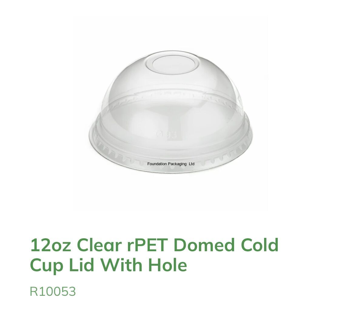 Qty (1,000) 16oz Clear rPET Domed Cold Cup Lid With Hole R10054