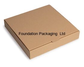 - A corrugated Plain Pizza box with hinged lid.