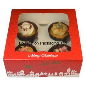Present your cupcake or cake with a wow! These 4 Premium Christmas Cupcake Window Box with divider shows off a beautiful festive print with a clear acetate window, perfect for transporting to customer, friends and family! Flat packed in 25's and they can be assembled with ease!