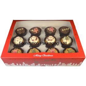 Present your cupcake or cake with a wow! These 12 Premium Christmas Cupcake Window Box with divider shows off a beautiful festive print with a clear acetate window, perfect for transporting to customer, friends and family! Flat packed in 25's and they can be assembled with ease!
