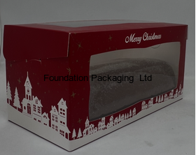 Present your Christmas yule log with a wow! These Premium Christmas Yule log Window Box shows off a beautiful festive print with a clear acetate window, perfect for transporting to customer, friends and family! Flat packed in 25's and they can be assembled with ease!